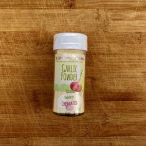 This garlic powder is made of 100% garlic. It is a completely handcrafted product peeled and washed by hand and then dried and ground. This variety (Chesnok Red) is a moderate flavored, very enjoyable powder.